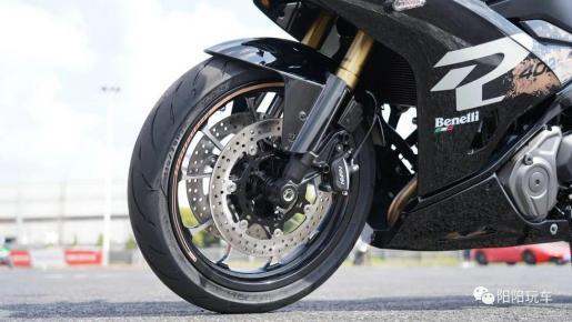 先看配置,减震方面给到的规格不错,金色马祖奇的倒立式前减震逼格满满,多连杆的中置后减震支持可调,前双碟搭配日清的双活塞卡钳,后单碟搭配日清双活塞卡钳,标配ABS,当然可关闭的TCS也是有的。