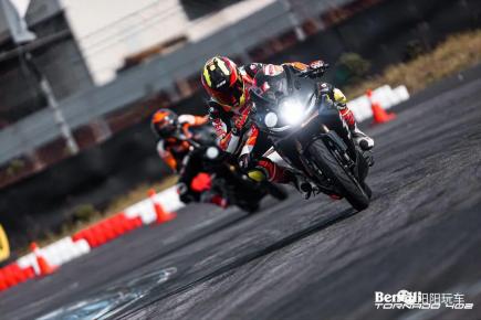 动力方面,399cc的异步双缸发动机,最大功率35KW/10000rpm,最大扭矩38NM/8000rpm,可越级挑战450cc-500cc的跑车,目前可以说是同级无敌手的存在了,当然滑动离合是有的。