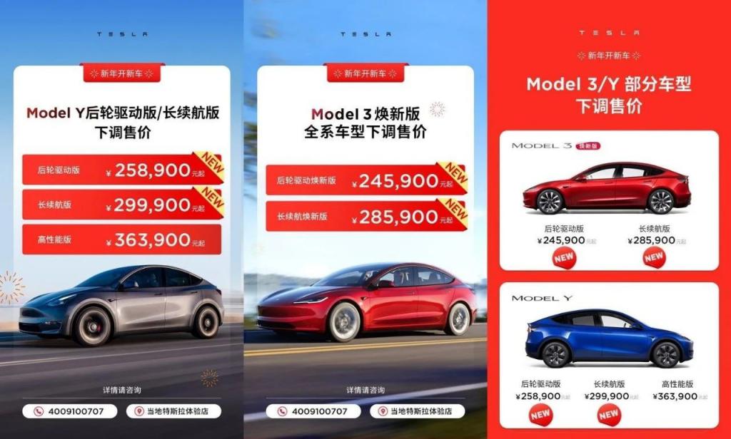 今天,特斯拉中国网站显示,Model 3 焕新版售价降至 24.59 万元,Model Y 售价降至 25.89 万元。作为了解,特斯拉 Model 3 车型尺寸方面,长宽高分别为 4720/1848/1442mm,轴距为 2875mm。后驱版车型的峰值功率为 194kW,峰值扭矩 340N · m;四驱版峰值功率为 331kW,峰值扭矩 559N · m。续航方面,前者 CLTC 为 606 公里;后者 CLTC 为 713 公里。动力方面,目前特斯拉 Model Y 共有三款配置车型,动力上根据配置不同,电动机总功率分别为 299 马力、450 马力以及 486 马力,对应 CLTC 纯电续航里程为 554km、688km 以及 615km。