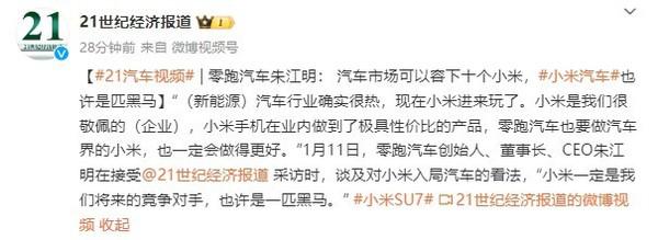 零跑汽车CEO: 市场可以容下十个小米汽车 它是匹黑马