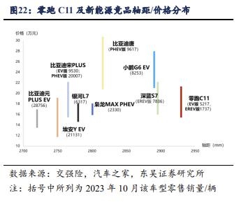 另一个原因是去年新能源汽车市场打起了价格战,零跑未能幸免。2023 年 8 月,C11 和 C01 都开始降价,最高降幅达 2 万元。小鹏同样也卷入了价格战,12 月,G6 全系限时减免 1 万元,起售价下探至 19.99 万元。