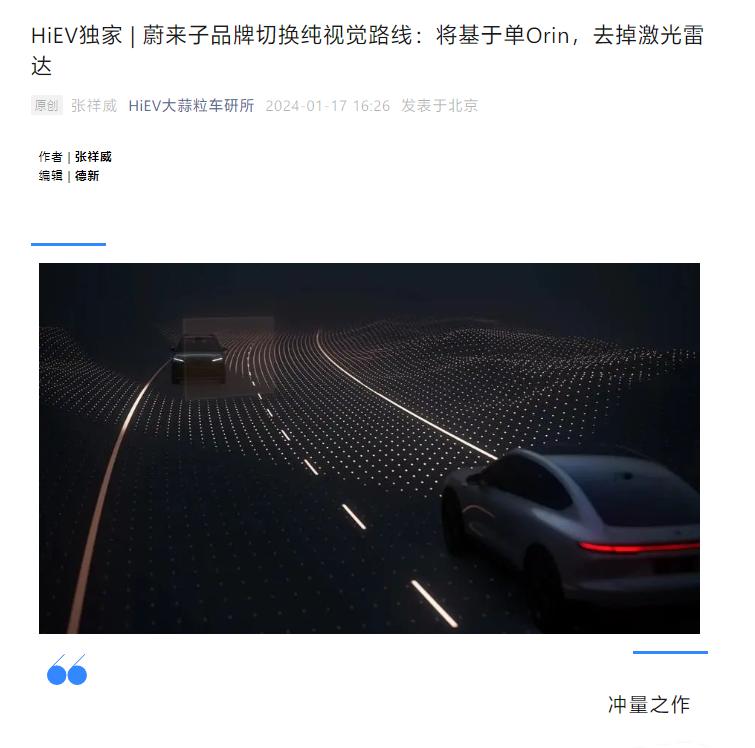 砍掉激光雷达,消息称蔚来汽车子品牌阿尔卑斯将采用纯视觉方案