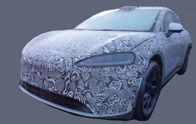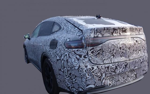 外观造型上,路试车伪装了较多的材料,可以看到车身线条圆融,与智界 S7 的造型相似。前脸采用封闭设计,车尾采用溜背造型,车侧配备隐藏式门把手。尾灯采用贯穿式设计。