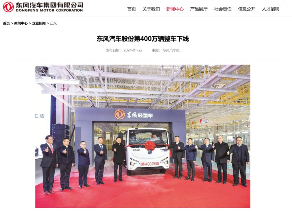 IT 之家 1 月 22 日消息,东风汽车集团有限公司今日在官网宣布,1 月 21 日,东风汽车股份有限公司在襄阳举行以 " 数智驱动 共襄未来 " 为主题的 " 新总装线落成暨第 400 万辆整车下线 " 系列活动。
