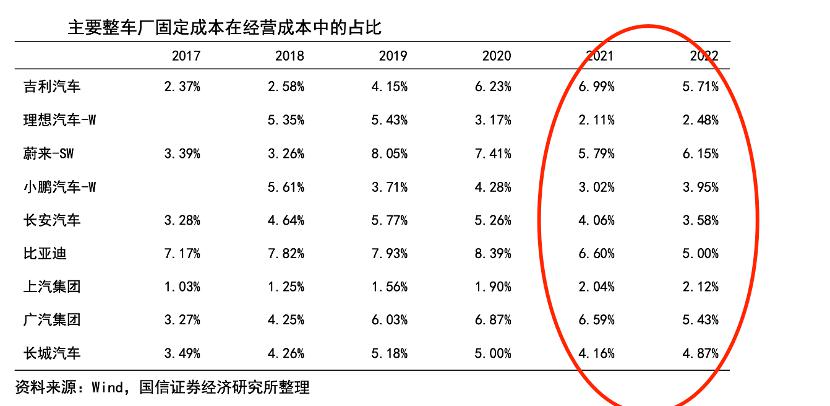 在上图中也能看到 2021-2022 年随着行业一轮行情的释放,绝大多数车企的固定成本占比才开始下降,小米也是要经历这个过程的。
