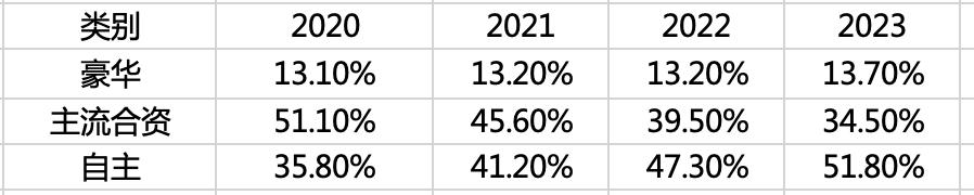 不过这里的主题是自主品牌相比外国品牌的份额变化,我们就不细究了。