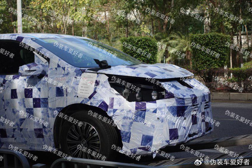 尽管前脸部分被厚厚的伪装遮盖,但我们仍能感受到其圆润且饱满的轮廓。车头的长度与比亚迪旗下的腾势 D9 相当,给人一种稳重大气的感觉。从露出的细节可以看出,新车的前包围下方设计了横条进气格栅,底部还配备了前唇,这不仅增强了前脸的层次感,还预示着不错的空气动力学性能。