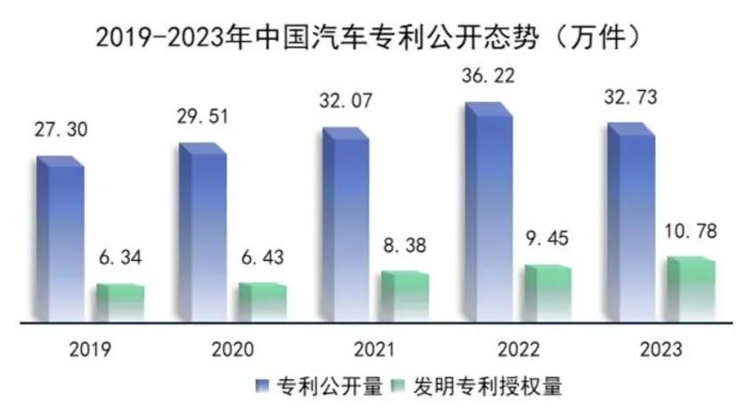 中汽信科数据统计显示,2023 年中国汽车专利公开量为 32.73 万件,同比下降 9.65%;激烈的市场竞争加快了企业高质量创新步伐,企业围绕核心技术的专利布局,促进了高价值专利的不断产出,2023 年中国汽车发明专利授权量为 10.78 万件,同比增长 14.02%,汽车企业关键技术创新能力进一步增强。