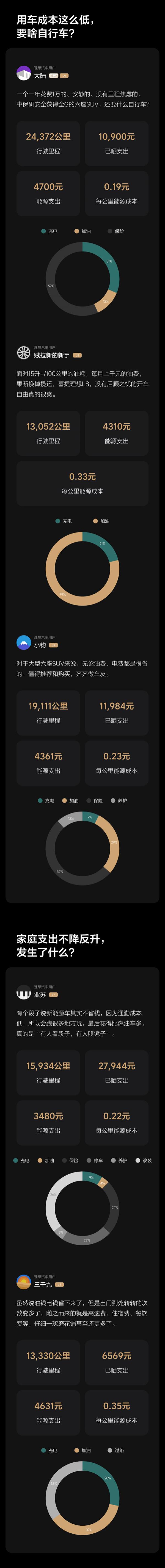 也有车主 " 笑中带泪 ":" 虽然说油钱电钱省下来了,但是出门到处转转的次数变多了,随之而来的就是高速费、住宿费、餐饮费等,仔细一琢磨花销甚至还更多了 "