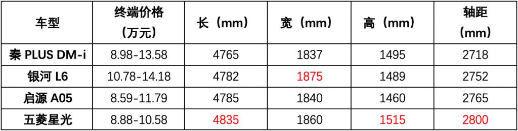 终端价格方面,启源 A05 和五菱星光堪称 " 卷王 ",最低配不到 10 万就能落地,特别是五菱星光,追求极致性价比、解决代步刚需可以考虑;优惠 1 万元后的秦 PLUS 跟上了内卷的步伐,并且有数以百万计的累计销量背书,依旧是物美价廉的选择;银河 L6 则是品质进阶之选,价格比同级竞品更贵,但驾驶感受和用车体验有所提升。