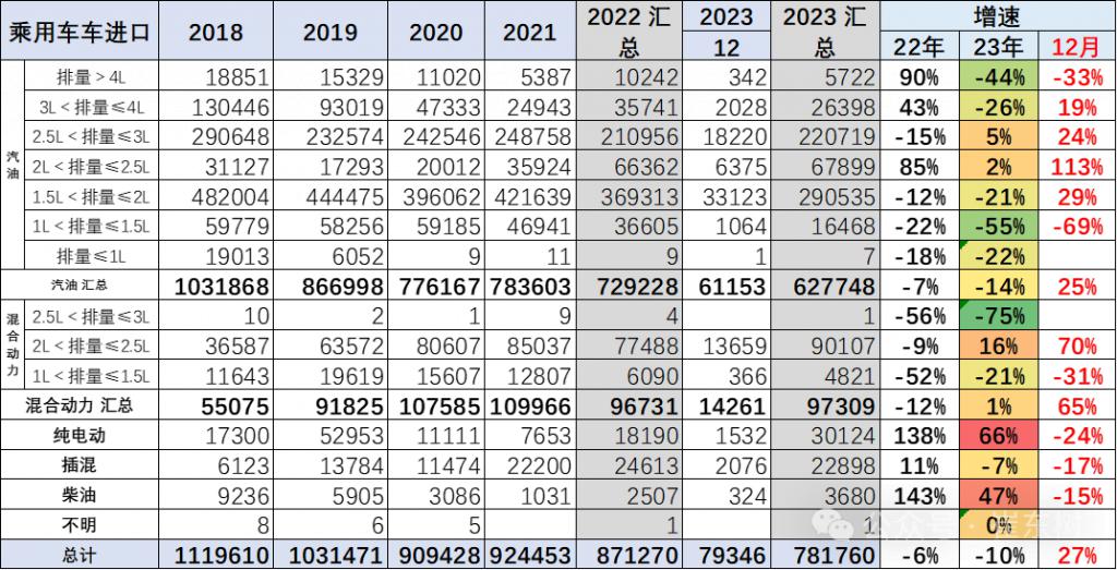 因此从数据上不难看出,2023 年,排量大于 4.0L 的进口车销量大跌 44%。对于追求大马力的消费者而言,目前很多性能车品牌都停止了新的发动机开发计划,转而推出新能源车型。而发动机没有了技术更新,这些车型的吸引力也会有所下滑。