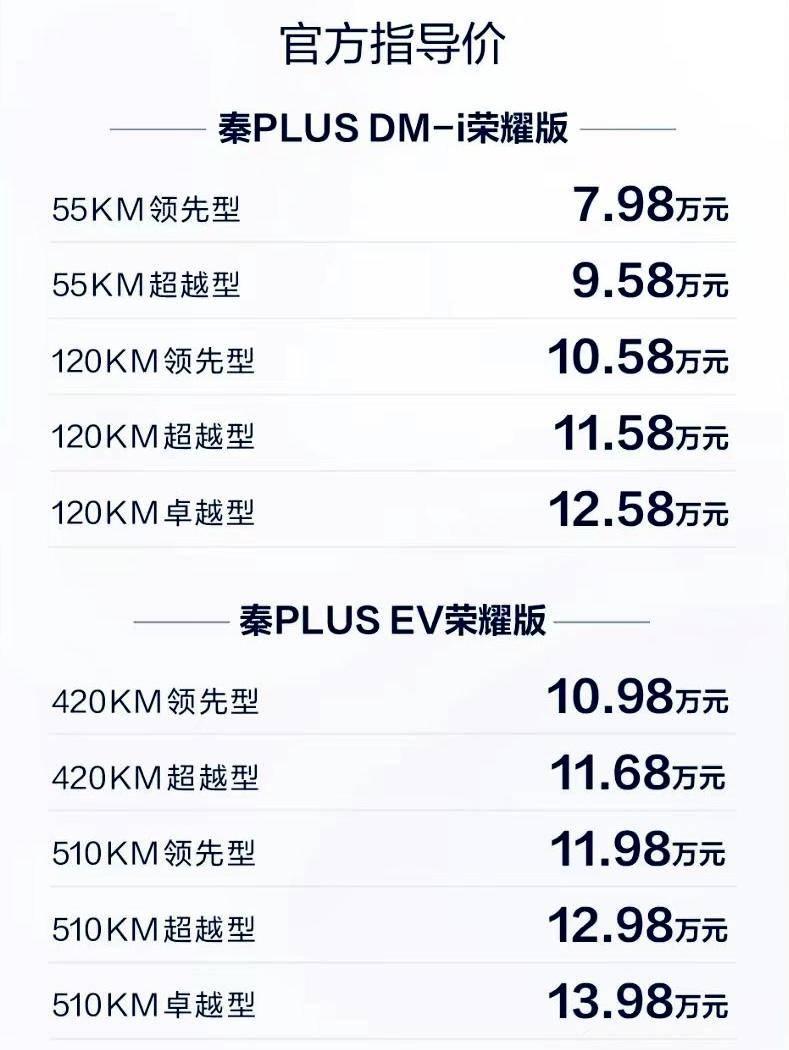 秦PLUS荣耀版7.98万元起,拉开“电比油低”大幕