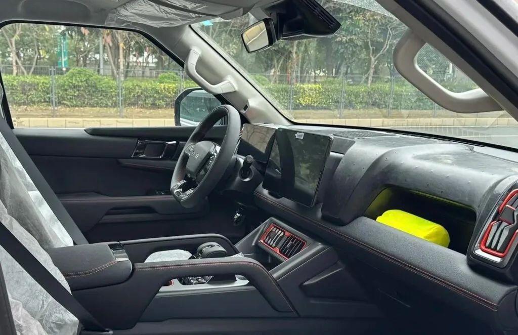 内饰部分,新车依旧采用经典的中控布局,一块尺寸宽大的中控屏将会占据 C 位,同时,液晶仪表设计也将出现在新车之上。结合之前的专利信息,预计新车高配车型还会提供 HUD 抬头显示。新车整体内饰运用了大量的粗犷肌肉线条,配合飞机推杆式的挡杆造型,越野氛围十足。