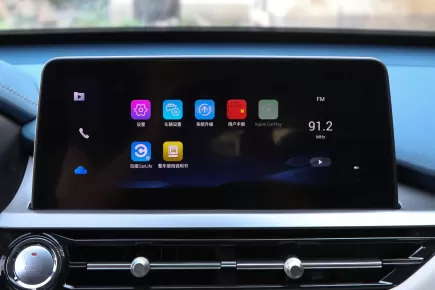 内饰方面,中控台布局简约,经常碰触的地方使用了软性材质覆盖和皮质包裹,配色清新,营造的氛围比较上档次,10.25英寸中控大屏符合年轻人的审美,不过车机功能有些少。