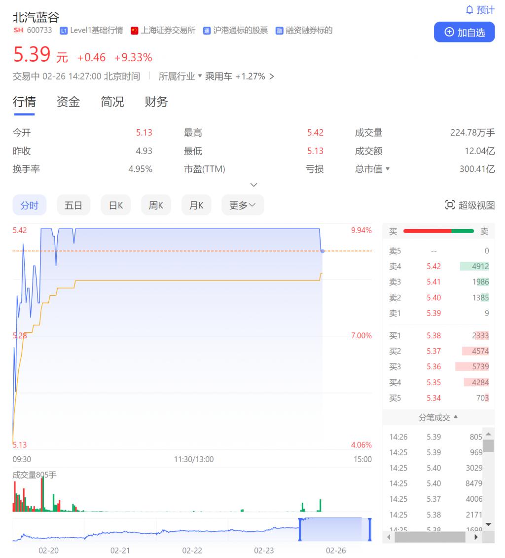汽车以旧换新,推动二手车市场发展的同时,自然也会提高新车销量。因而会议过后,整个汽车板块股票集体飙升,江淮汽车、江铃汽车、长城汽车等车企股票暴涨,北汽蓝谷甚至直接涨停。