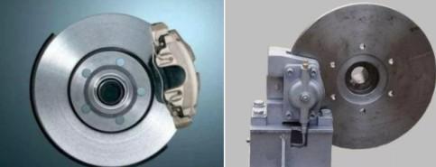 通风盘式刹车比盘式刹车多许多的工艺孔洞。通风盘式刹车质量比盘式刹车的轻,但是制造的工艺和价格比盘式刹车的昂贵。