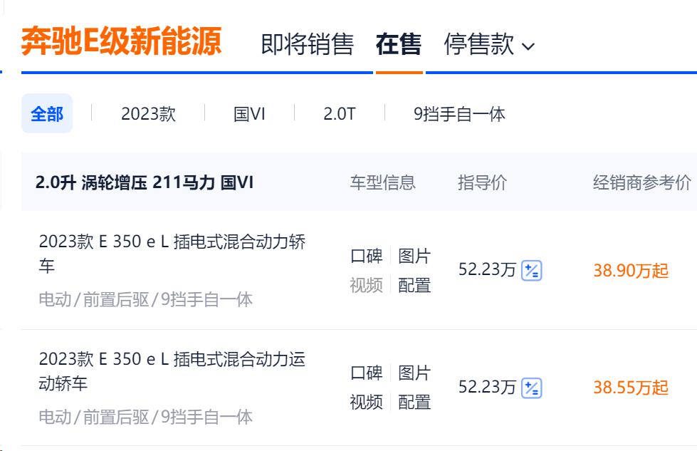 前几天我去了一趟奔驰 4S 店,本想了解一下 2023 款 E350 eL(E 级新能源),早前听说这车的终端优惠十分可观,指导价 52.23 万竟能优惠至 38.90 万!不到 40 万就能买到奔驰 E 级,而且是插混版本,即便是老款车型也足够吸引了。