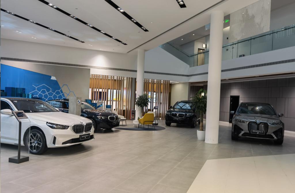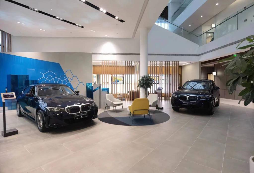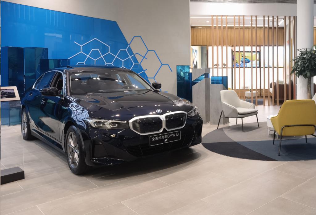 门店里专门设了一个新能源专区,依次摆放着 i5、i3、iX3 以及 iX,尽管除了我之外就没有其他客人光顾这个专区,但起码摆好了阵势,透露出一种 " 想把电车卖好 " 的态度,这与奔驰门店将燃油车和新能源车混着摆的布局形成鲜明对比。