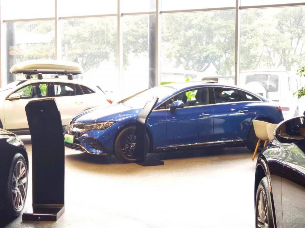 这家奔驰 4S 店里除了一辆 EQE 之外就没有展出其他新能源车,从销售顾问的回答来看,他们估计很久都没卖出过一辆新能源车了,否则不会连 E 级新能源已停产的信息也要反复确认。