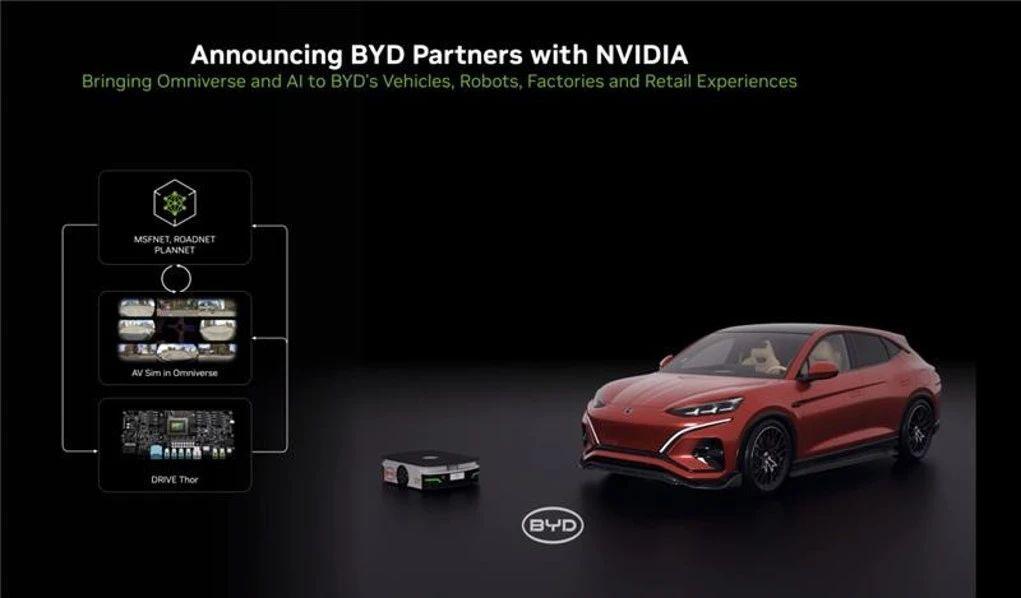 比如比亚迪在首发加入英伟达 Stream 游戏串流娱乐合作之后,又将加入 Thor 智驾芯片的合作阵营,同时还首发了 Project GR00T 机器人、Issac 机器人开发工具、Omniverse 虚拟平台等一系列的深度合作。