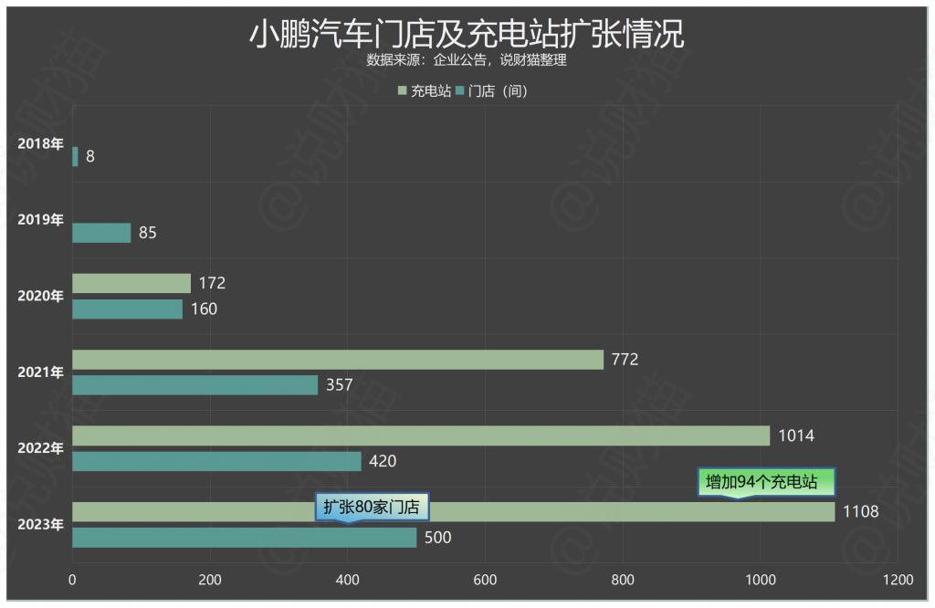 尽管财务报表一直处于净亏损,但去年,小鹏的门店及充电站均有增加。