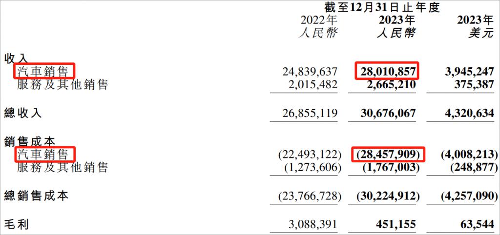 细看小鹏汽车的收入构成,汽车销售收入 280 亿,汽车销售成本就 284.58 亿,毛亏损 4.58 亿。