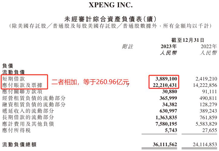 截至去年底,小鹏汽车现金及现金等价物为 211.27 亿,但是,短期借款、应付账款及票据合计为 260.96 亿元。