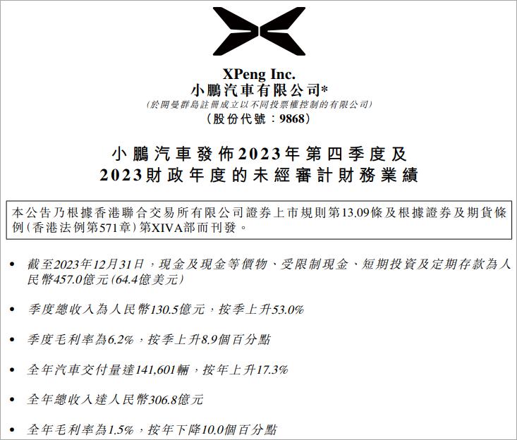 刚刚,小鹏发布 2023 年业绩。