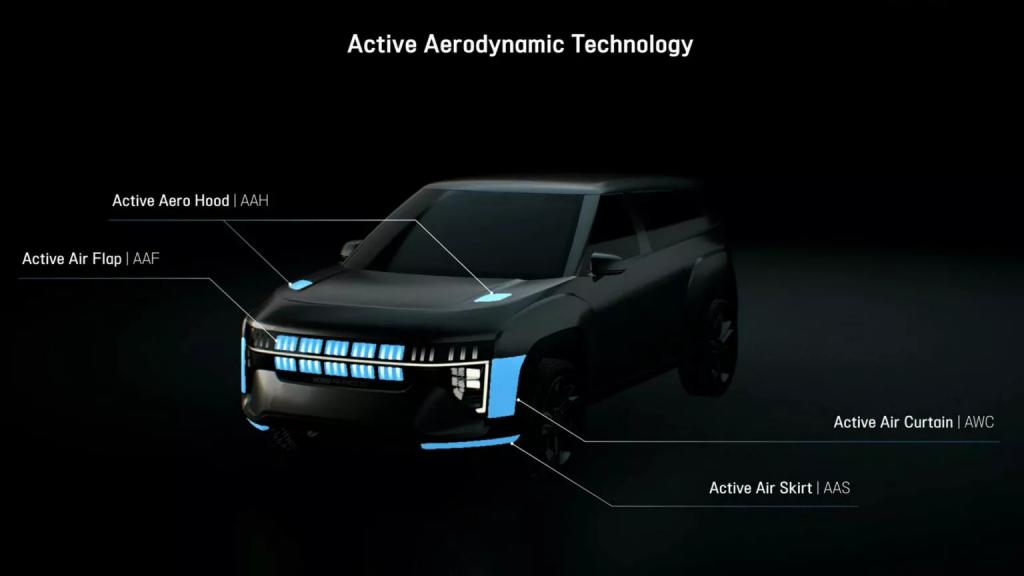 该模块深受主动百叶窗格栅的启发,并具有可打开和关闭以减少阻力的组件。然而,这过于简单化了,因为前端配备了主动气帘、气裙、格栅挡板和引擎盖通风口。这些可以改善空气动力学,同时还可以进行热交换,从而优化电池冷却效率。
