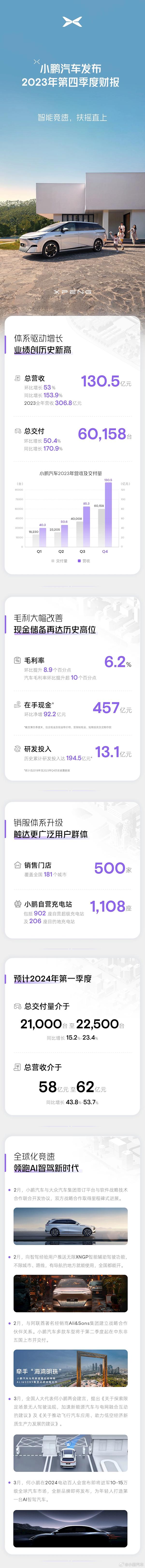 小鹏汽车2023年营收大涨 现金储备457亿元史上新高