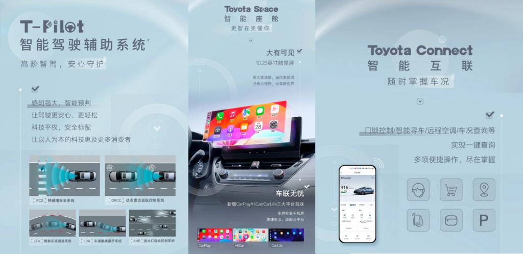 2024 款雷凌 185T 车型搭载 T-Pilot 智能驾驶辅助系统,具有 PCS 预碰撞安全系统、DRCC 动态雷达巡航控制系统、LTA 智能车道循迹系统、LDA 车道偏离警示系统、AHB 远光灯自动控制系统。