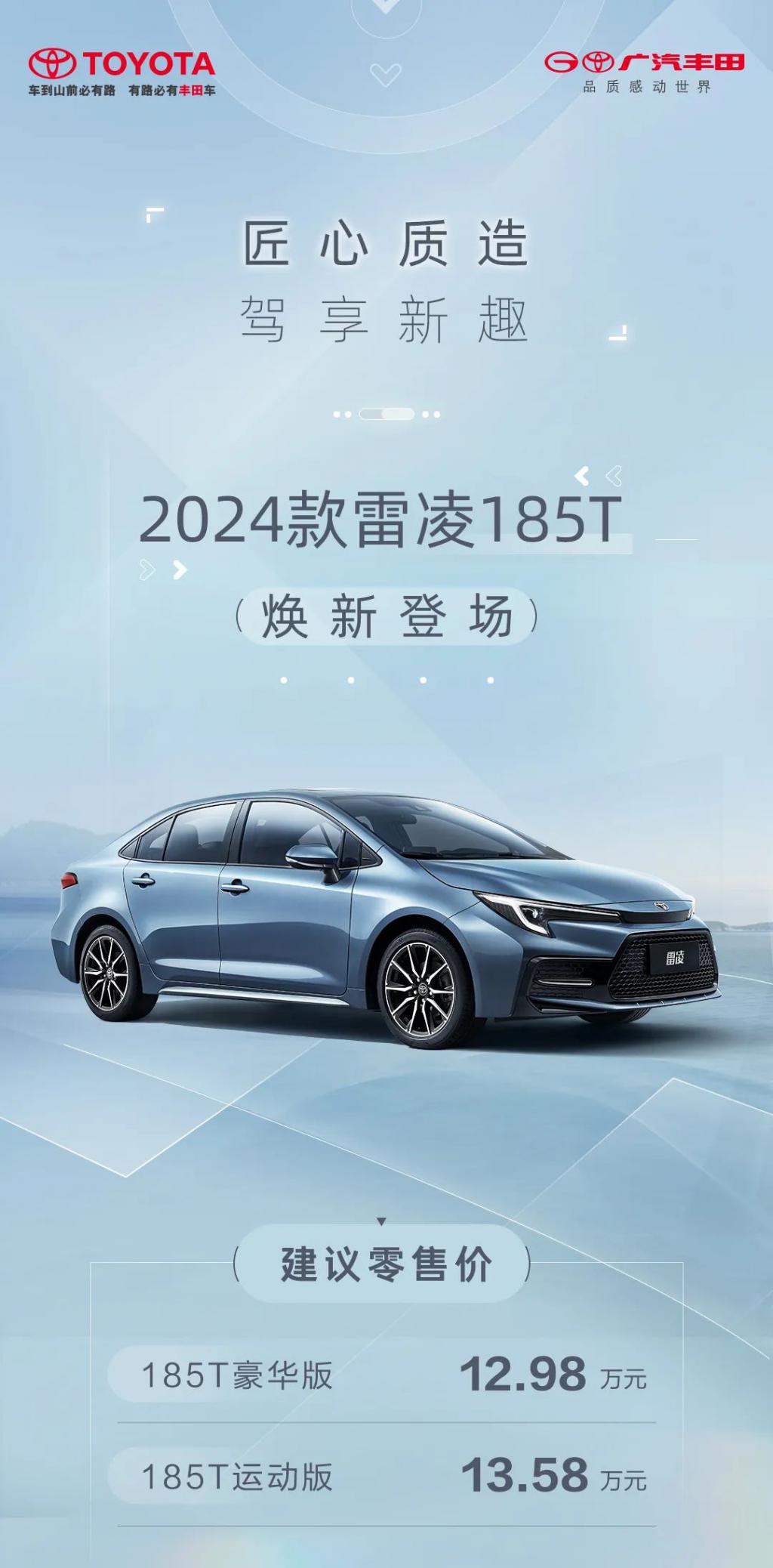 广汽丰田 2024 款雷凌 185T 上市,建议零售价 12.98-13.58 万元