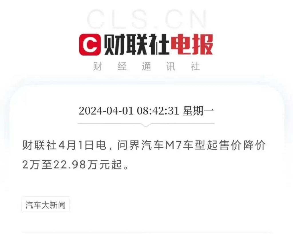 小米上市后仅仅几天,问界 M7 车型就官宣降价 2 万至 22.98 万起售;小鹏 G9 开启限时减免补贴,最低 24.39 万起售;而蔚来给出油车置换补贴,综合叠加优惠可到 3 万;有直接竞争关系的极氪 007 直接推出了一款全新的入门配置,售价 20.9 万,比小米还低 6 千元。