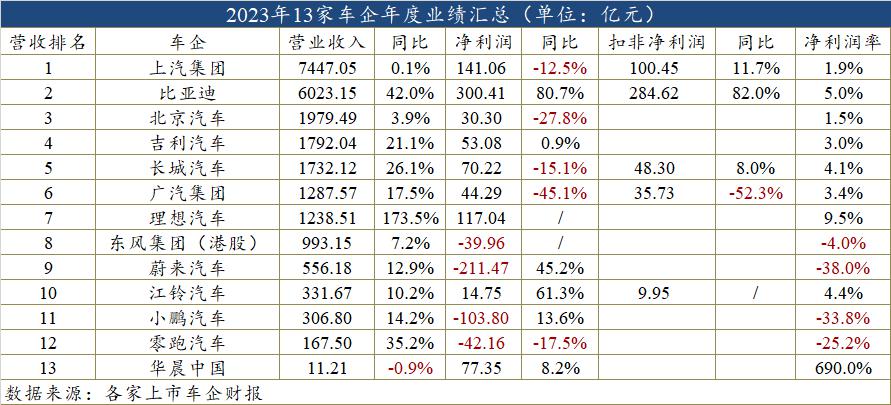 尽管营收和净利润都无法与比亚迪相提并论,但理想汽车仍是 13 家车企中为数不多的赢家之一。