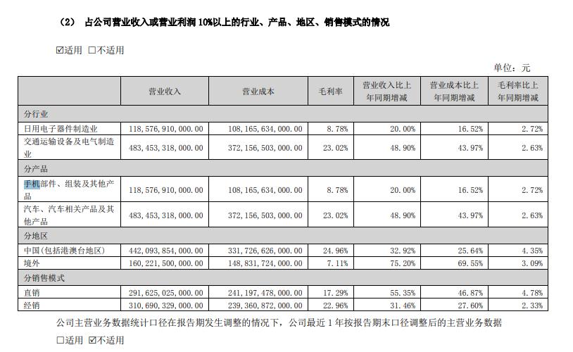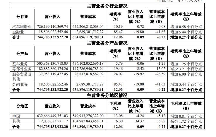 财报中分行业、分产品和分地区的销量数据显示,去年上汽在国内的营收虽有所减少,但相应的成本也在减少,而在海外市场营收只增加 6.3%,成本却增加 36.88%,导致后者的毛利率不增反降。这意味着,2023 年上汽在国内和海外的业务都出现了问题,多方承压之下赚得自然就不多了。