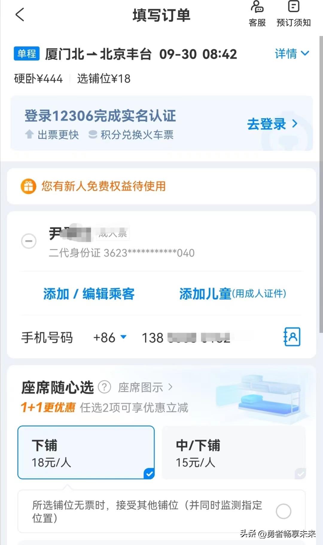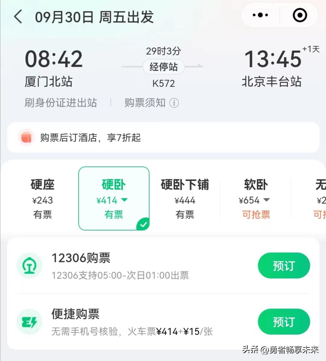 以在高铁管家购票为例,厦门到北京K572,未注册12306账号的用户购票需加20元/张。