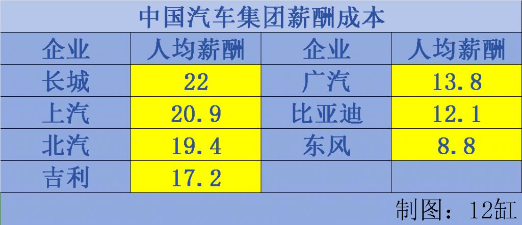 车企员工薪酬:长城人均22万居第一,上汽人均超20万,东风人均8.8万央企垫底