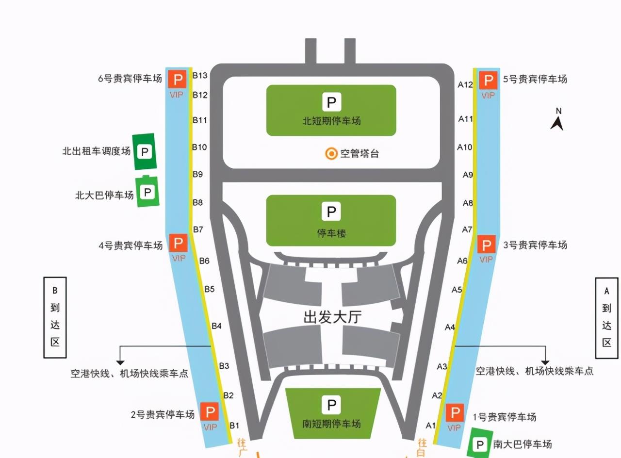 白云机场目前共有8个停车场,1号航站楼共有P1-P5五个停车场(网约车、大巴可停靠P4停车场);2号航站楼共有P6、P7、P8三个停车场。