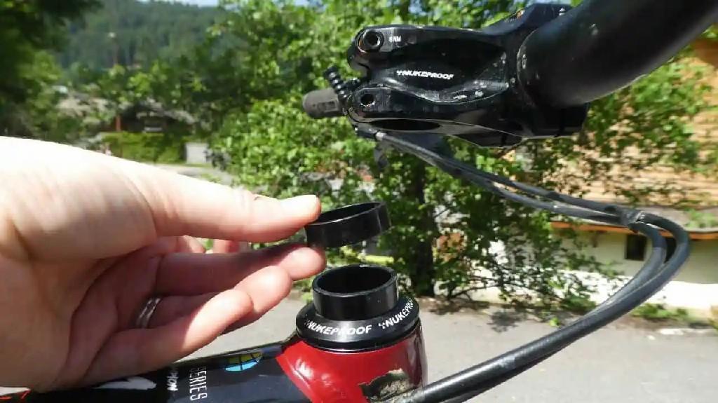 3.调整车把的高度。增加或者减少垫片可以调节车把的高度,垫片通常有 20 或 30 毫米尺寸很容易可以买到。