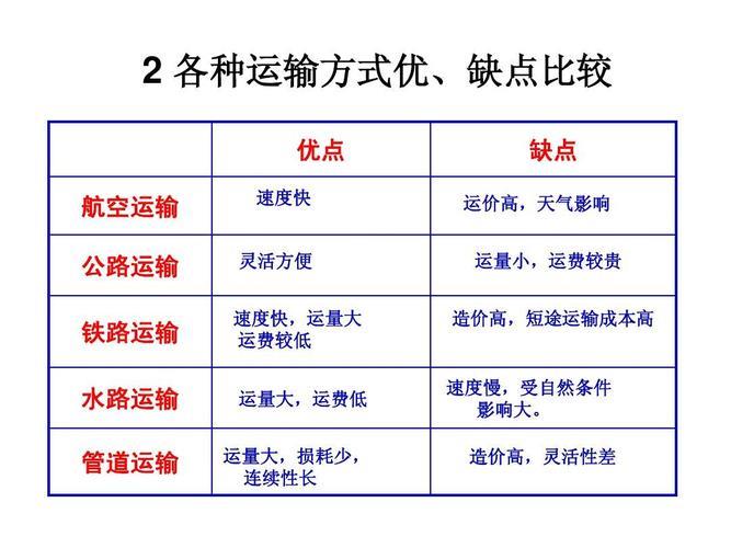 此外,由于铁路线路的局限性,一些偏远地区只能采用公路或航空运输方式。