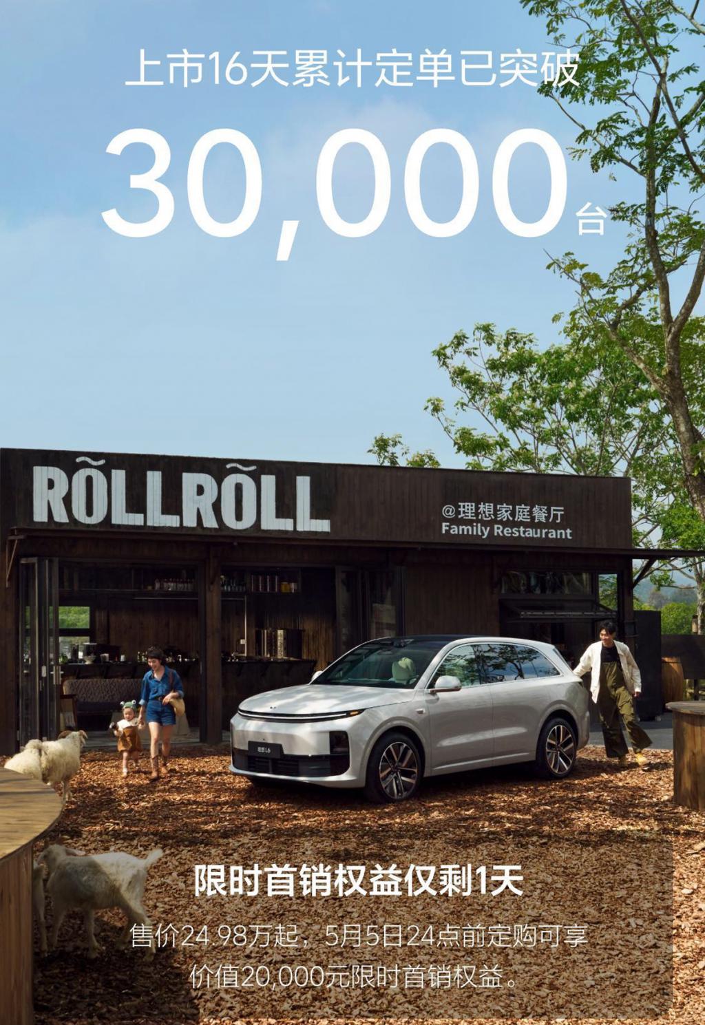 网通社从理想汽车官方获悉,理想 L6 上市 16 天累计定单已突破 30000 台,从 20000 台订单至 30000 台订单仅仅用了 4 天。与此同时,5 月 5 日 24:00 前定购的用户,可享价值 20000 元的限时首销权益。理想 L6 于 4 月 18 日正式上市,新车共计推出了 2 款车型,售价为 24.98 万 -27.98 万元。