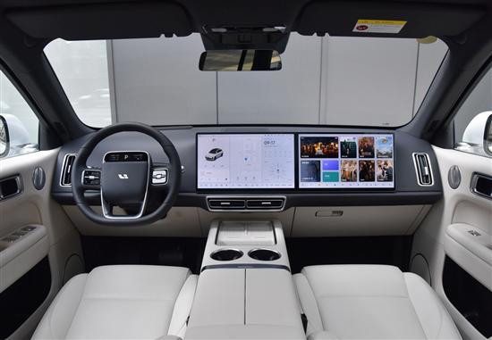 内饰部分,新车继续沿用家族式设计,车内四屏交互由中控屏、副驾娱乐屏、安全驾驶交互屏和 HUD 抬头显示组成。其中前排双 15.7 英寸 3K 大屏做到了和 iPad Pro 同水平的窄边框和屏占比,并标配高通骁龙 8295 芯片。不过,新车并没有搭载后排娱乐屏,略有遗憾。