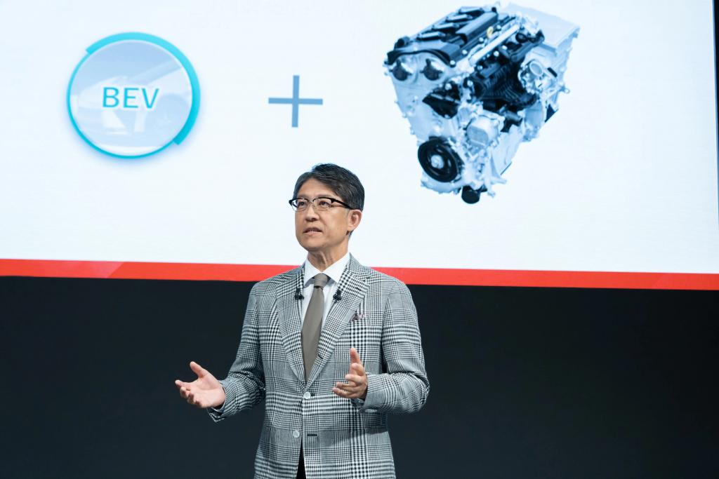 在电动化领域,早在 2021 年 12 月,丰田便一口气发布 15 款电动车,但即便丰田宣布全面向电动化转型,其对于 " 电动化转型 " 的态度一直不是很坚定,尤其是丰田汽车董事长丰田章男。此前丰田章男多次抨击电动车,今年 1 月,丰田章男表示:" 无论电动汽车取得多大的进步,混动汽车、燃料电池电动汽车、氢燃料汽车仍然将占到市场销量的 70%。" 并强调:" 发动机车一定会留下来。" 也就是说,丰田章男认为纯电动车市占率最多仅为 30%,剩下的将由混合动力汽车、氢燃料电池汽车和燃油车占据。在此之前,丰田章男也指出汽车制造商应该继续投资混合动力汽车,而不是全力投入电动汽车。在他看来," 纯电动并非汽车行业的唯一出路 ",只要能节能减排,混动也应该被提倡。