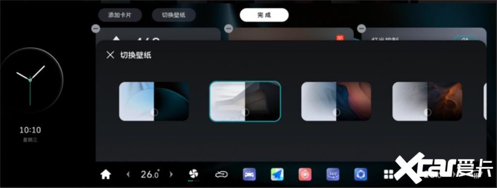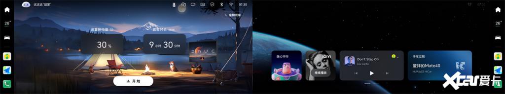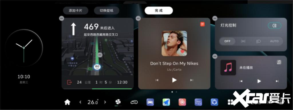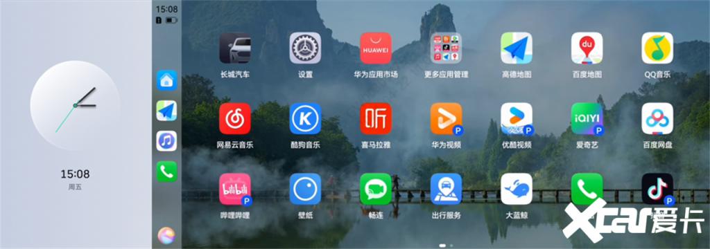 车机主交互界面经过全面优化,带来更丝滑的操作体验:屏幕显示升级为卡片式桌面,用户不仅可以根据个人喜好更换全新升级的主题壁纸,还能通过 DOCK 功能自定义主界面的图标显示。在白天或光线强烈的环境使用车机时,新增的白天模式,可以带来更加舒适的视觉体验;状态栏新增蓝牙以及 Wi-Fi 浮窗,也大大提升了操作的直观性和便捷性。