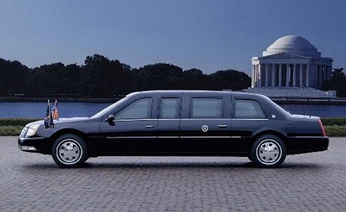 美国总统座驾是一辆特制的加长版凯迪拉克防弹车。一般美国总统的座驾都是具备防弹功能,主要职责是保护总统安全,防弹玻璃厚达五层,达12cm,全车所有玻璃只有司机侧能下降7厘米。具有催泪弹发射装置并配有弹道和爆炸防御系统,装甲厚度更是在20 公分往上,整车整备质量在6.8至9吨左右。车身整体密封性良好,车舱内配有单独的供氧系统,可以防止生化武器的攻击;车窗可以完全锁死,并且可以抵御穿甲弹与爆炸袭击。车辆的油箱也有装甲保护,同时带有一种特殊泡沫物质,当车辆发生撞击时可以防止油箱爆炸。同时还配备了夜视摄像头、GPS追踪以及卫星通信系统,可以驾驭多地形,并能随时保持与总统联系。总统座驾可乘坐7人,一般,总统座驾上至少有3人,即司机、保护总统的特工,以及坐在后座上的总统本人。