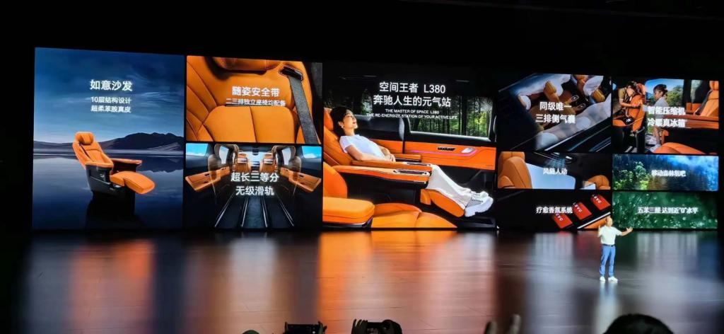 会呼吸的超柔苯胺真皮,拥有 " 吸星大法 " 的汗吸式座椅,元气座舱空调独立三区 16 个出风口,八横六纵三环骨架、2000MPa 超高强度钢的堡垒式安全,赛博底盘集成技术让 L380 陆地空客起步不抬头,刹车不点头,切弯准,出弯顺……