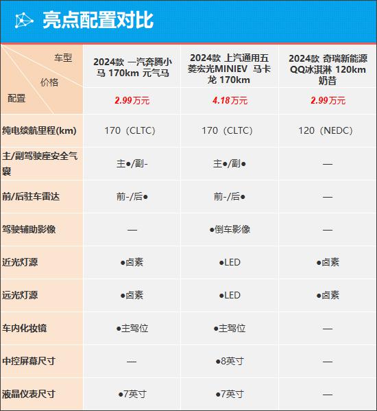 具体到车辆配置层面,我们挑选了售价尽可能相近的车型。通过对比来看,奔腾小马整体配置表现相当不错,甚至可以追赶上售价更高的宏光 MINIEV。而相较同价位的奇瑞 QQ 冰淇淋,奔腾小马多出了主驾驶座安全气囊、后驻车雷达、主驾驶位车内化妆镜以及 7 英寸液晶仪表等配置,孰优孰劣一眼便知。