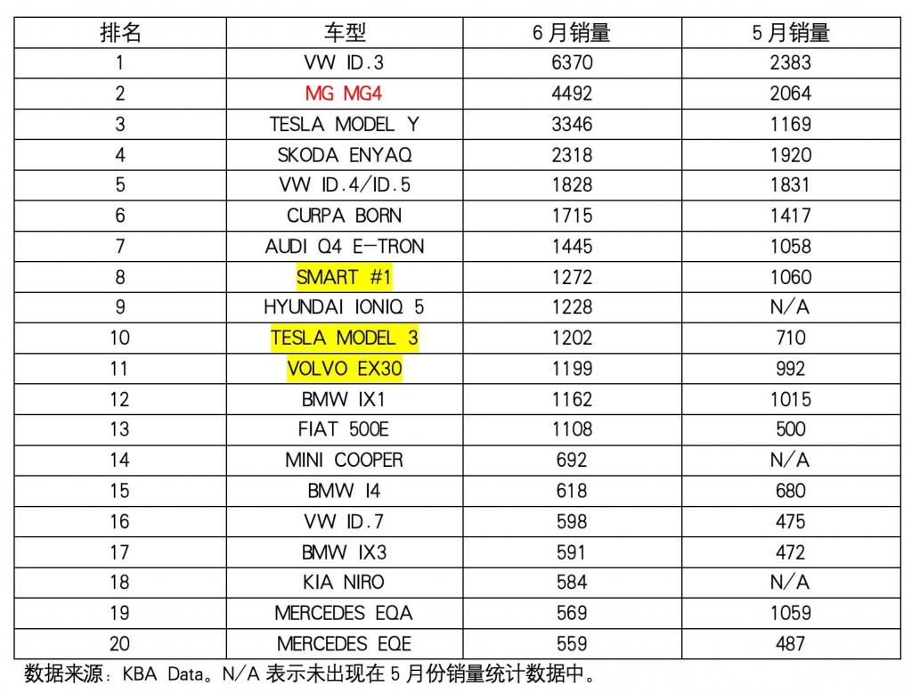 欧洲5国6月电车销量:惨!中国车最后一搏,全面消失在各国榜单
