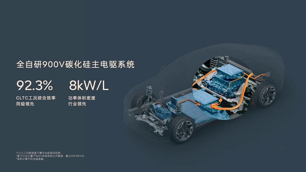 以乐道 L60 为例,900V 平台下,附以碳化硅主电机电驱,可以使电驱系统的 CLTC 综合效率达到 92.3%。