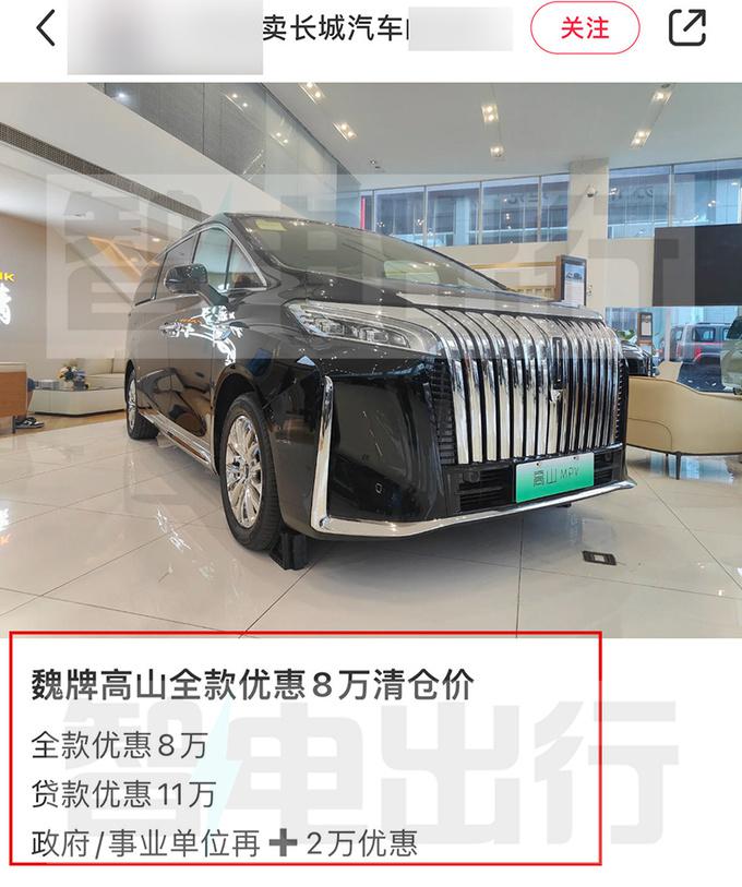 某经销商销售表示,现款高山全款优惠 8 万元清仓,贷款优惠 11 万元,政府 / 事业单位再优惠 2 万元。